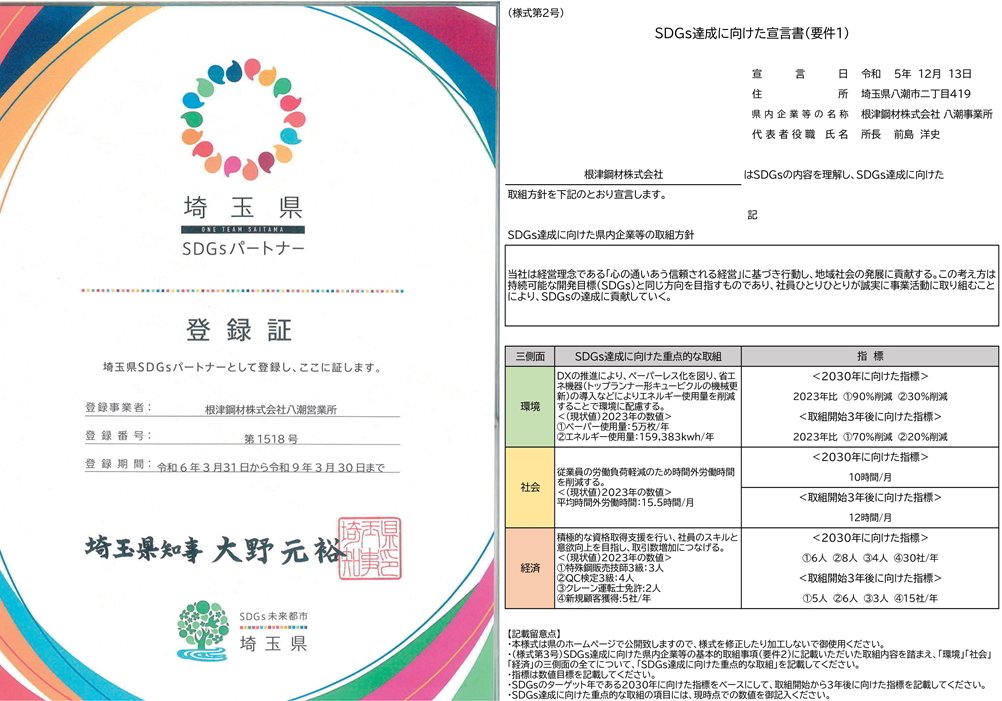 自治体パートナー SocialSDGs認証登録 根津鋼材では 各地の自治体によるSDGs認証登録をしています 千葉県ちばSDGsパートナー登録制度 浦安事業所 長野県長野県SDGs推進企業登録制度 蓼科事業所システムソリューション事業部 福島県須賀川市須賀川市SDGs 須賀川事業所長沼事業所 神奈川県相模原市さがみはらSDGsパートナー登録制度 相模原事業所 埼玉県埼玉県SDGsパートナー登録制度 八潮事業所